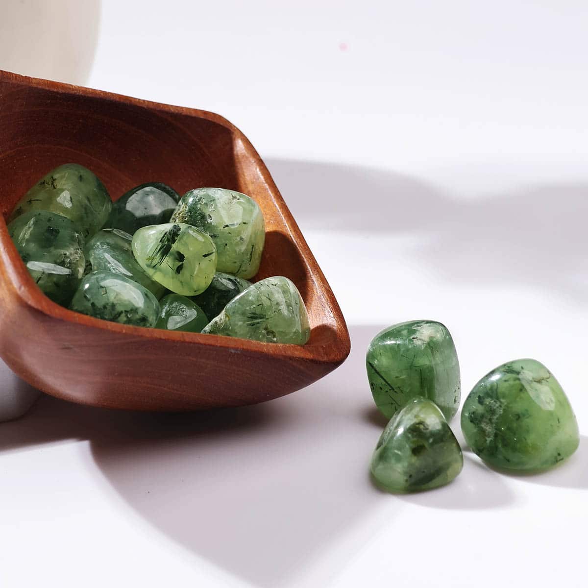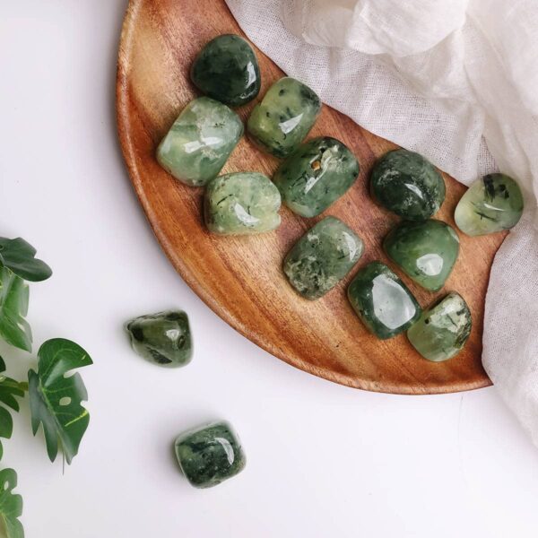 Tumble stones are a versatile shape that is all-purpose and radiates energy gently in various directions. The meaning of its name relates to it being called after Colonel Hendrik Von Prehnite who was the governor of the Cape Of Good Hope. Prehnite is considered a stone of unconditional love and the crystal to heal the healer.